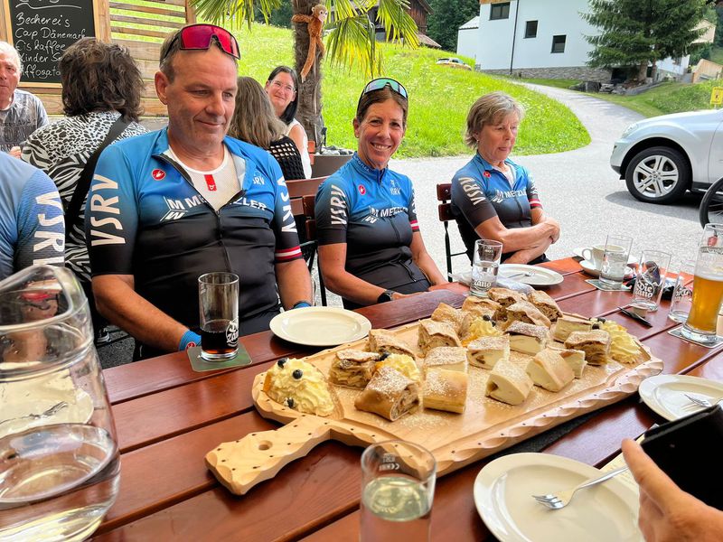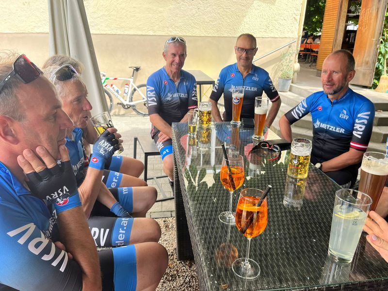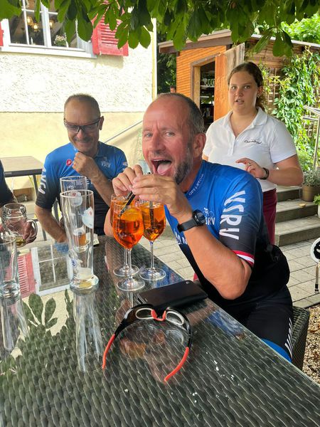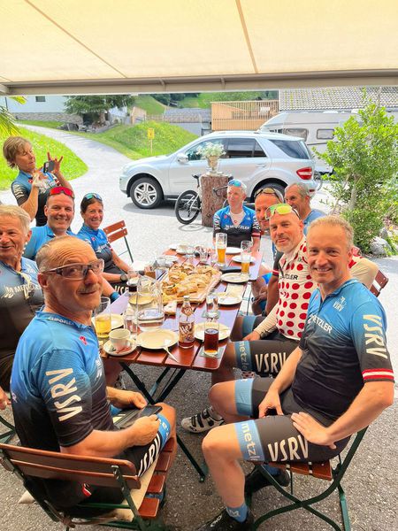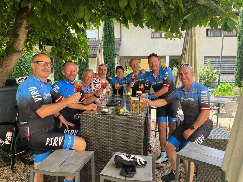 Zehn mutige RadheldInnen (inkl. 2x Frauenpower mit Turbo) standen in Rankweil bereit – manche frisch geölt, manche noch im Halbschlaf, aber alle mit einem Ziel: Überleben. Und Strudel. Und vielleicht ein bisschen Aperol. Nach einer rütteligen Gravelmassage Richtung Feldkirch kam der erste "WTF-Moment" in Gaschurn: Eine Rampe, steiler als so mancher Karriereweg. Während die Waden weinten, roch es oben bereits nach Strudel und Erlösung: Der Blaue Anton – das gelobte Land aus Apfel, Topfen und Kalorien. Mit leichtem Aperol-Gefälle im Blut rauschte man talwärts – nur um dann von Bludesch nach Schnifis nochmal richtig die Oberschenkel zum Singen zu bringen. Spoiler: Es war kein Liebeslied. Finale: Rankweiler Hof. Getränke. Lachen. Lautstärkepegel irgendwo zwischen Volksfest und Rockkonzert. Und das Gefühl: „Das machen wir bald wieder.“ (Sagte jedenfalls jemand. Nach dem zweiten Spritz.)