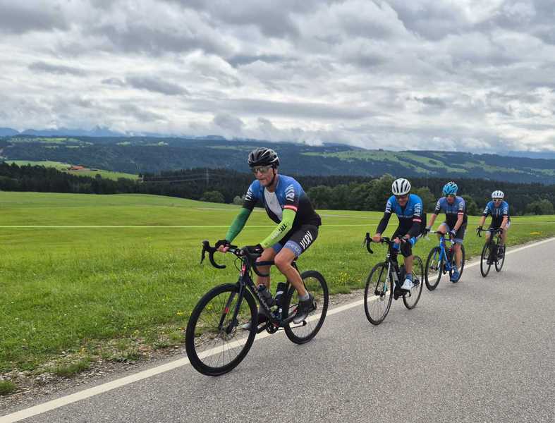 Sieben tapfere PedalritterInnen machten sich bei schönem Wetter auf den Weg – das Wetter war freundlich, aber offenbar ein ganz schlechter Schauspieler. Nach dem ersten Anstieg zum Kleinberg (ganz harmlos, nur leicht bergauf... senkrecht), beschlossen die Wolken: „Jetzt wird’s ernst.“ Regen. Temperatursturz. Fröstelnde Gesichter. Aber keine Panik – Bernd und Harald, unsere Trittfrequenz-Flüsterer, hielten den Laden zusammen wie Sekundenkleber. Trotz permanentem Duscherlebnis (leider kalt, leider nicht freiwillig) kämpfte sich die Truppe tapfer weiter – und wer Eschen kennt, weiß: Dort gibts Rampen, bei denen sogar Ziegen kehrtmachen. Doch auch jene Rampen wurde mit einer Mischung aus Gruppendynamik, Trotz und wahrscheinlich innerem Weinen gemeistert. Belohnung: Ein Eis in Nofels – weil man nach 115 km im Regen auch mal süße Flüssigkeit braucht, die nicht vom Himmel kommt.