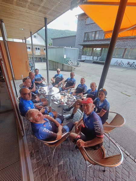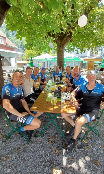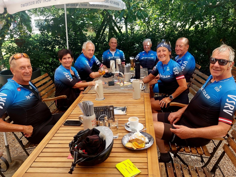 Vorderwaldrunde am 17.7.: Achrain, Lingenau, Langenegg, zurück über Krumbach, Langen und Bregenz. Beim Rückweg durfte der Einkehrschwung nicht fehlen - dieses Mal zum Walhalla Stüble in Lustenau. Danke Rudi und allen die mitradelten.