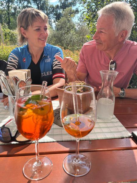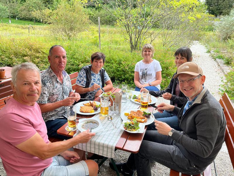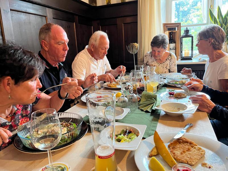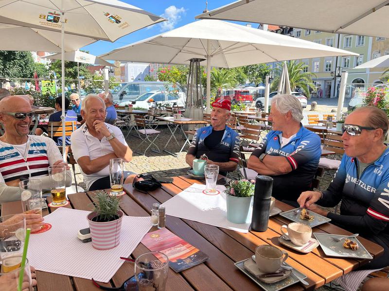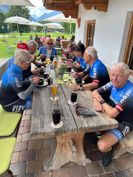 Im Schnitt wurden 100 Kilometer pro Tag abgestrampelt. Damit niemand vom Rad fiel, sorgten feine Einkehrmöglichkeiten für Nachschub an Flüssigkeit und fester Nahrung. Abends wartete im Kapuzinerhof