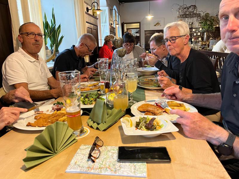 Die Abende waren bunt, laut und lustig – Unterhaltung inklusive. Am Mittwoch traf man sich zusätzlich im Steinbach in Laufen zum gemeinsamen Essen, das wieder einmal bewies: Radfahrer können nicht