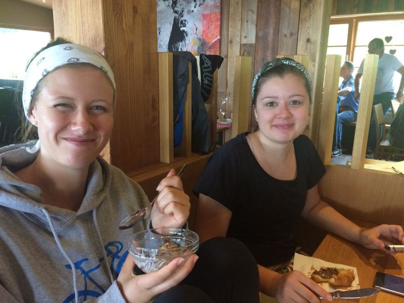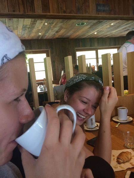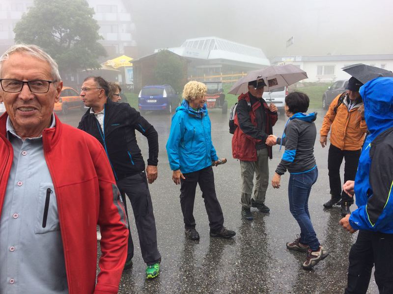 Geladen waren auch die Partner der Helfer. Das Frühstück war sehr toll vorbereitet, eine riesige Auswahl an Speisen und Getränken, alle waren begeistert. Der Abmarsch ins Tal wurde dann noch vom Regen begleitet.